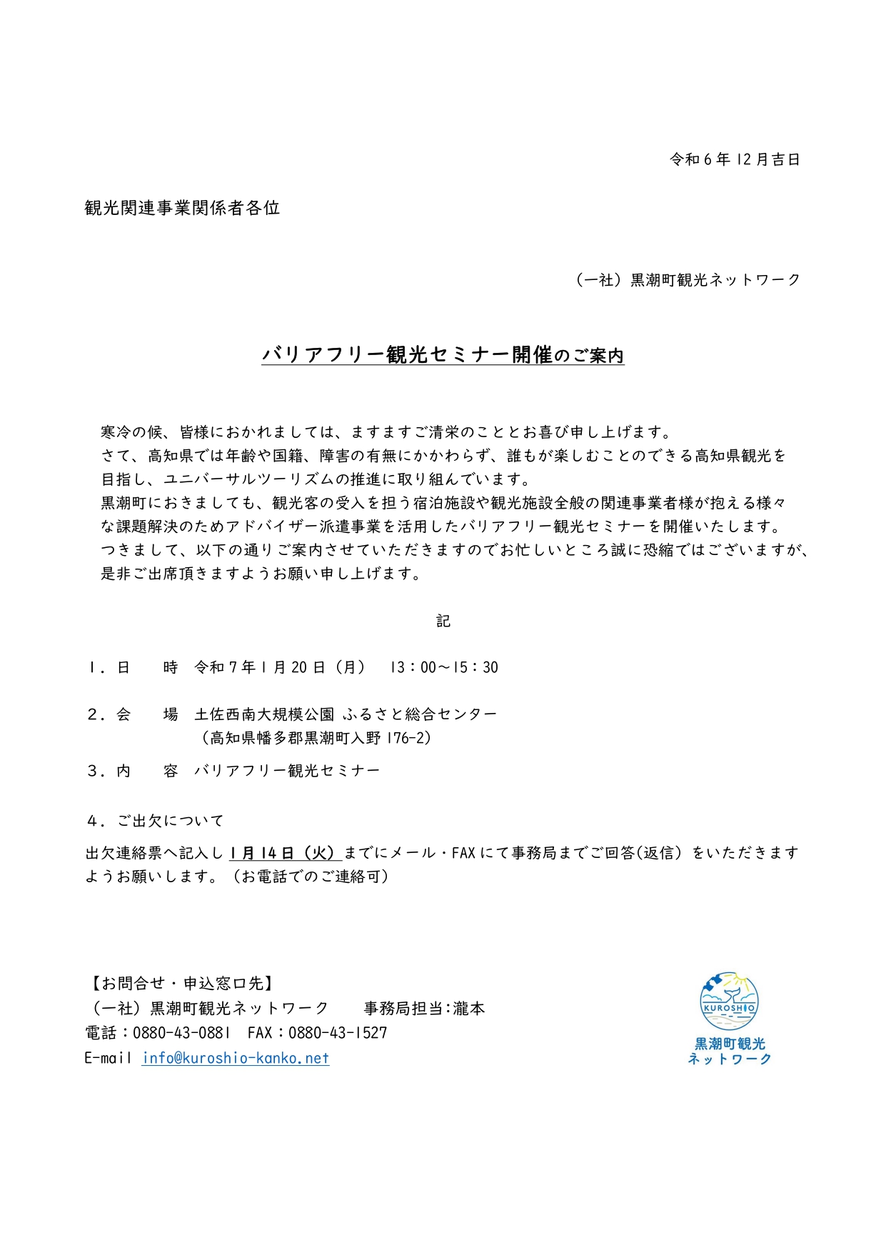 We will hold a barrier-free sightseeing seminar utilizing an advisor dispatch business to solve various issues.