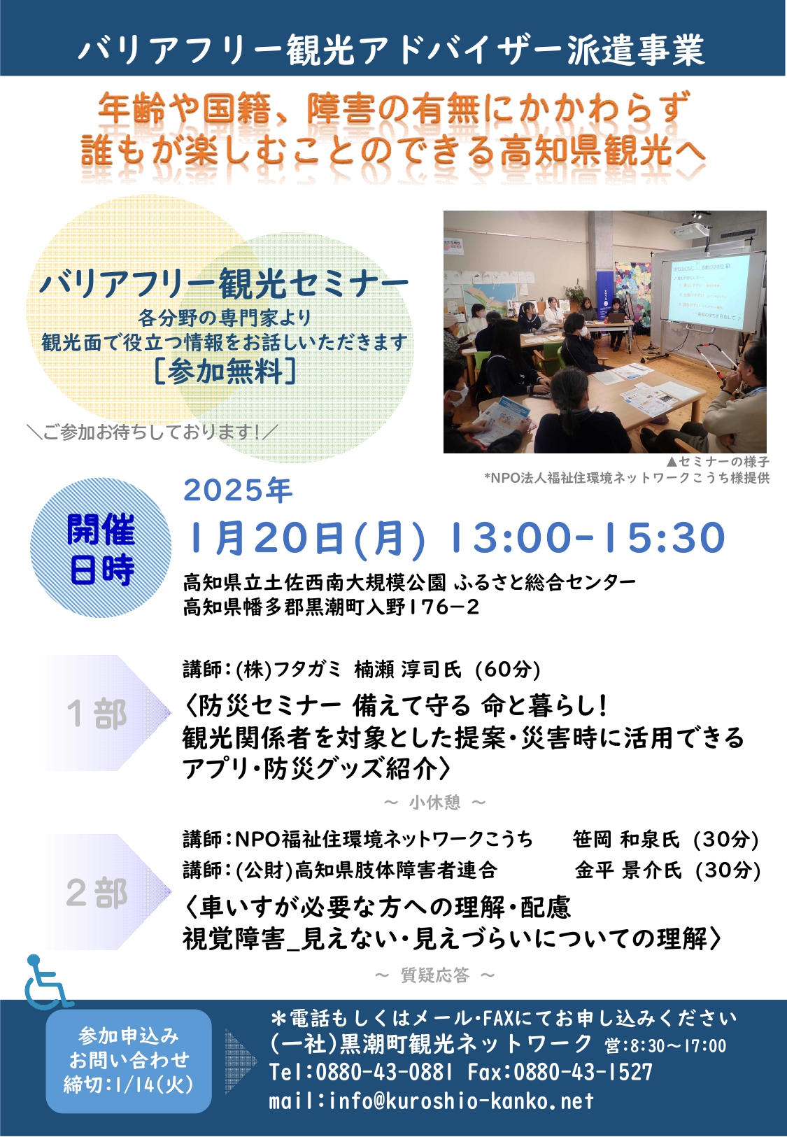 We will hold a barrier-free sightseeing seminar utilizing an advisor dispatch business to solve various issues.