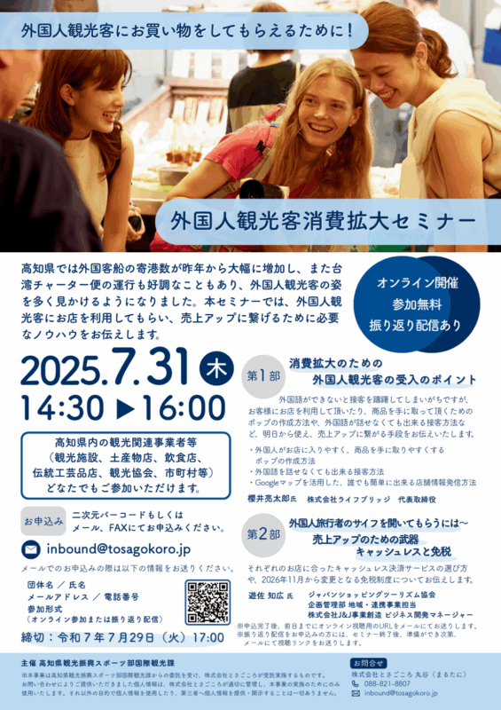 In this seminar, we will discuss how to devise multilingual solutions, how to select cashless payment services, and points for disseminating information.