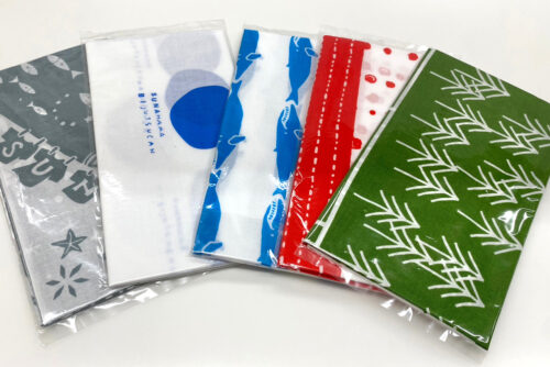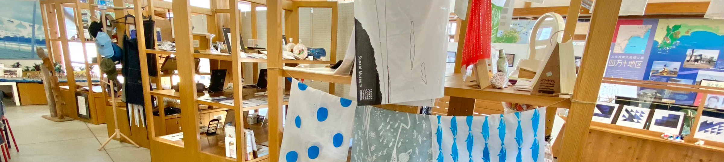 At Sunabi Museum, original goods such as T-shirts, masking tapes, and Tenugui are sold at the Sunabi Museum Shop in Bios Oogata Information Center.