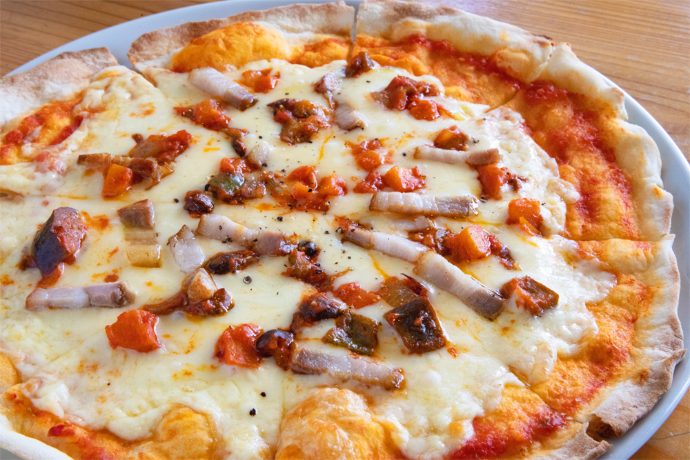 The menu mainly serves pasta and pizza, and we are particular about making handmade as much as possible using local ingredients instead of ready-made products, such as making homemade bacon with Shimanto pork and putting it on pizza.
