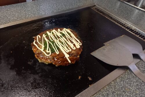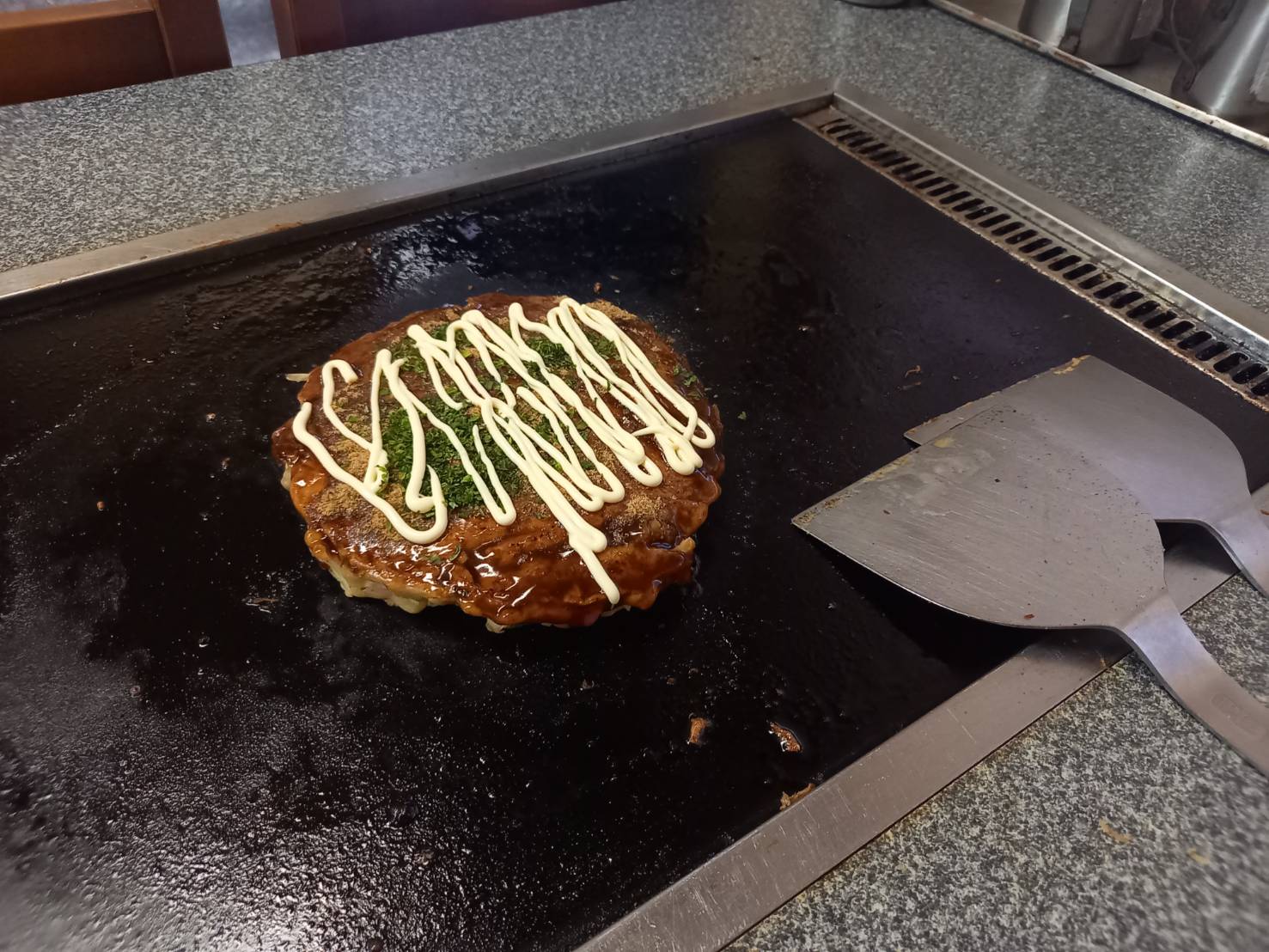 It is an okonomiyaki shop that is crowded every day with many locals visiting.
