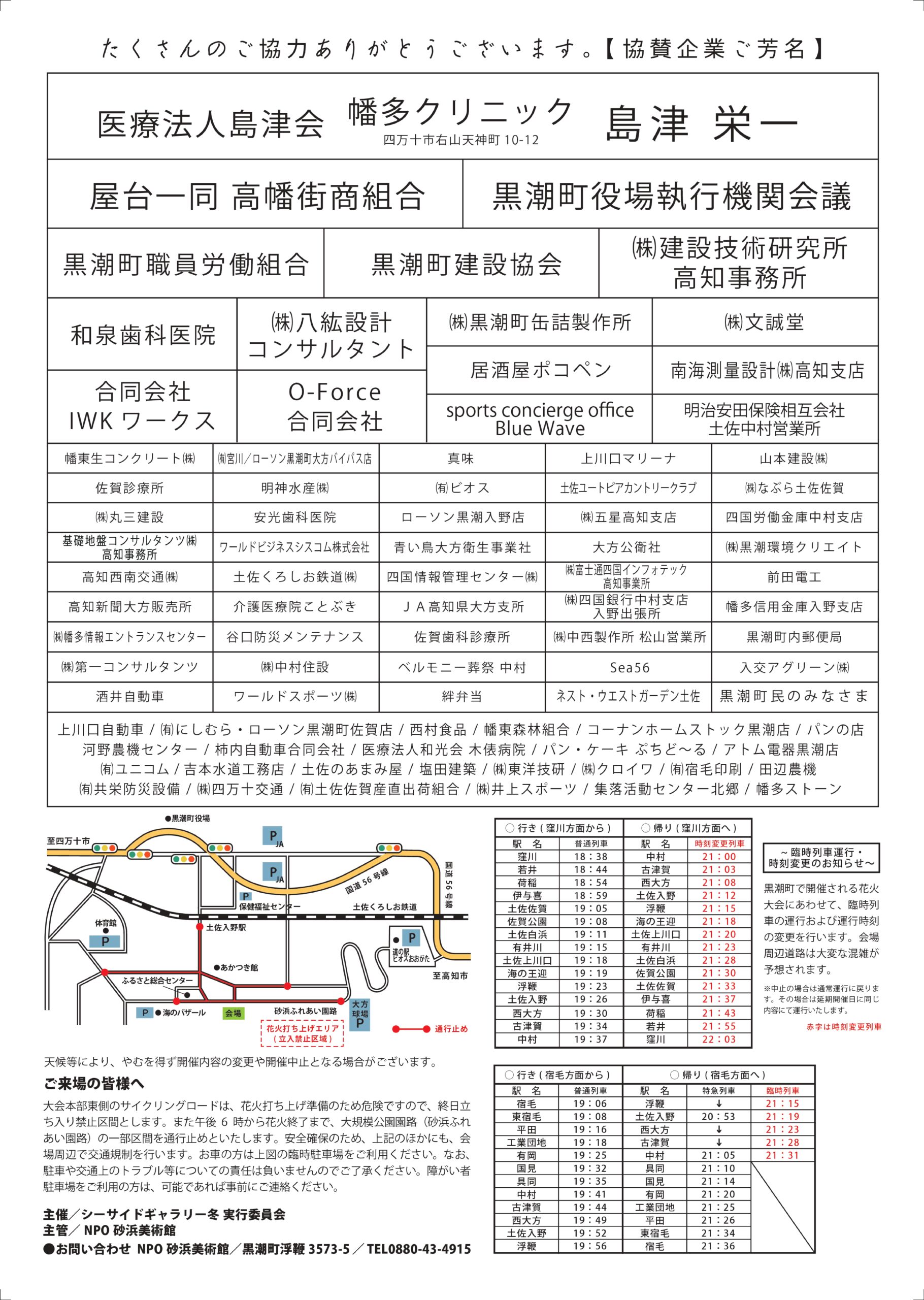 ※This time, there will be no kiss fishing tournament, sandy beach stage, Bon dance tournament.